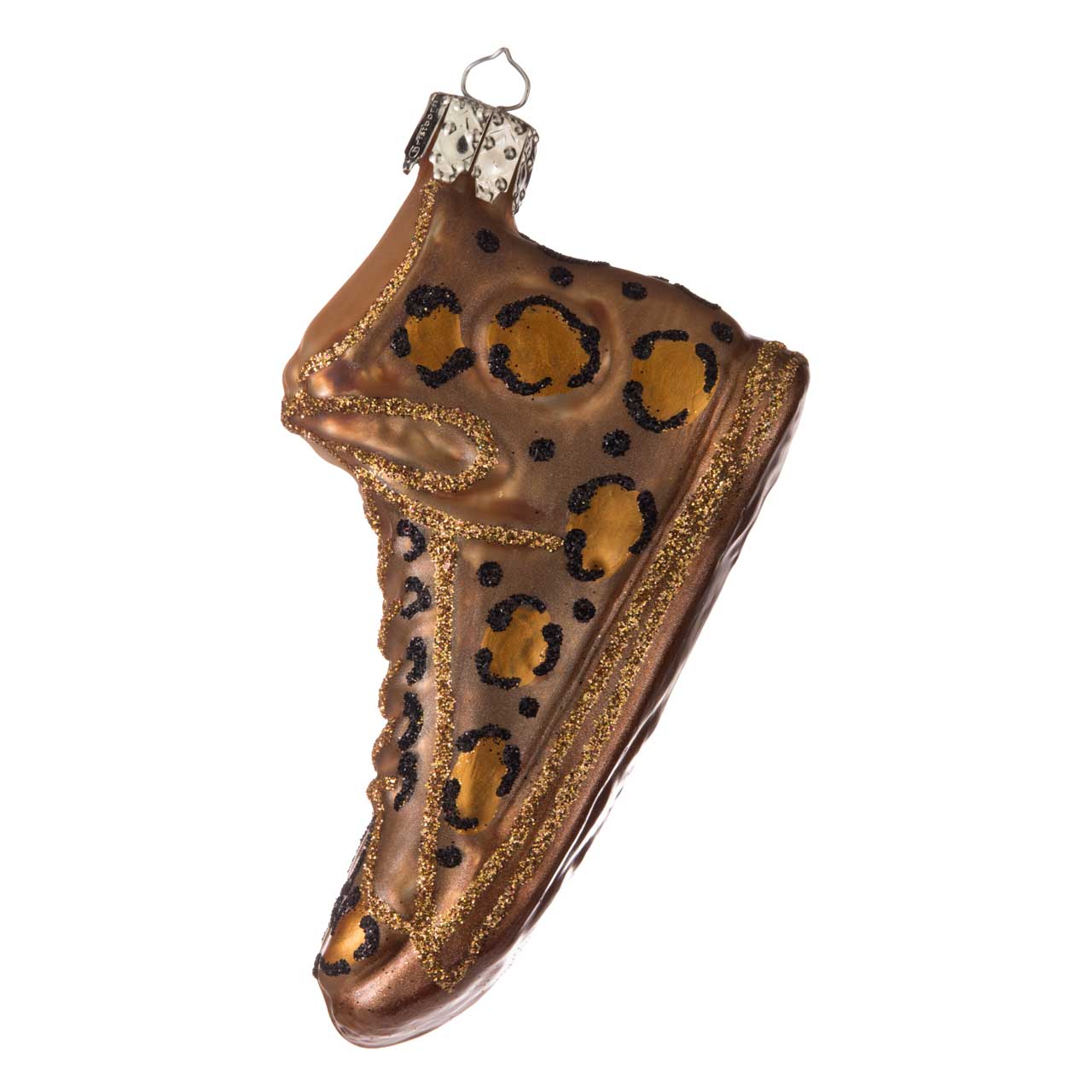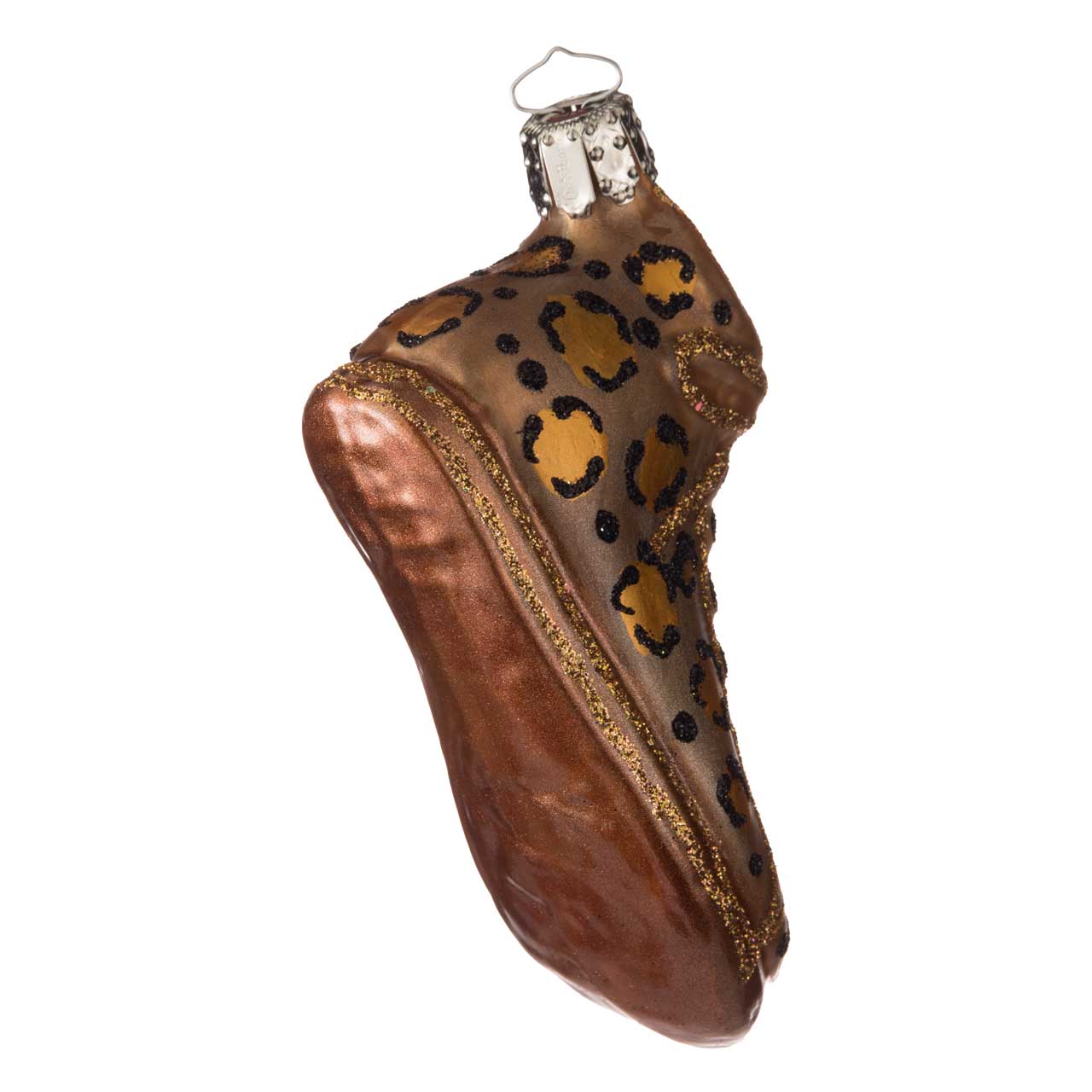 Cette reproduction riche en détails montre une chaussure sportive dans un ton bronze brillant avec des éléments scintillants dorés et noirs dans un design léopard. Des contours fins et des lacets structurés confèrent à la forme profondeur et dynamisme. La combinaison de la chaude brillance du métal et du motif scintillant produit un effet remarquablement stylé.