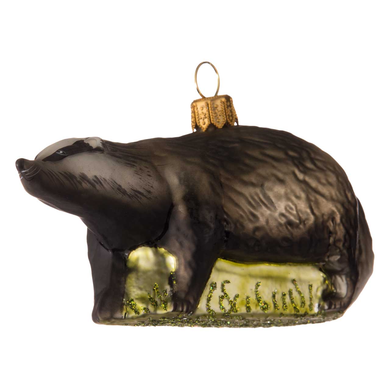 Cette figurine artistique représente un blaireau fidèle à la nature, dans des tons gris et noirs vifs, avec de fins détails peints à la main. Le corps semble modelé de manière vivante, tandis que le sol d'un vert doux avec des accents scintillants rappelle le sol de la forêt et la mousse. Sa forme trapue et incurvée lui confère un charme naturel.