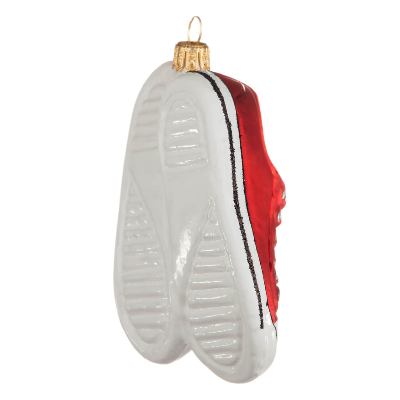 Portez tout simplement vos baskets préférées sur le sapin et faites ainsi une déclaration de mode qui coupe l'herbe sous le pied de tous les détracteurs. En rouge mat festif, avec une semelle blanche brillante et des contours noirs scintillants, la paire est définitivement noble et devient un véritable accroche-regard dans le vert du sapin.