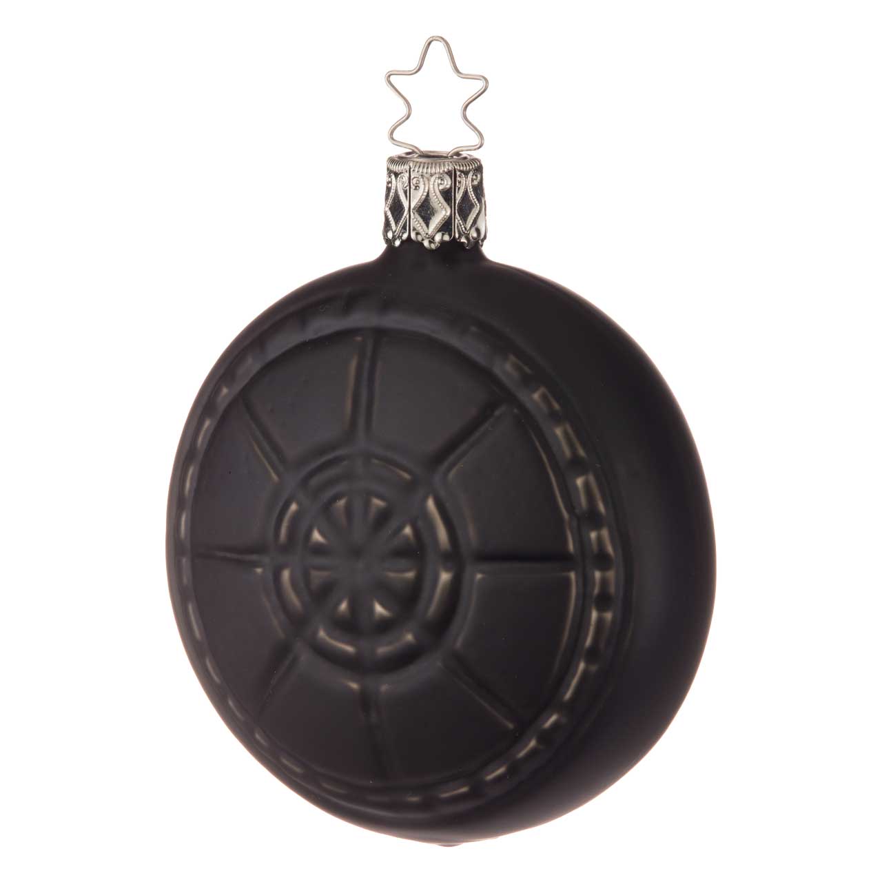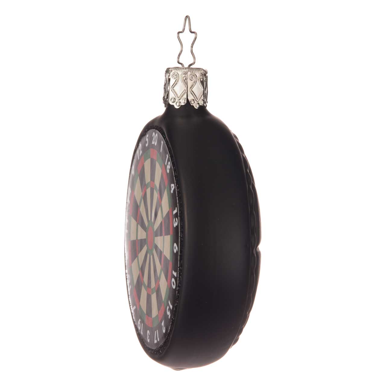 Notre tableau de fléchettes n'a certes qu'un but décoratif et est un peu plus petit, mais il respecte par ailleurs toutes les règles : les numéros, le double, le triple et le bulls-eye. Pour le reste, la cible est d'un noir sobre. Le dos est décoré de légères lignes qui rappellent le classique grillage métallique.