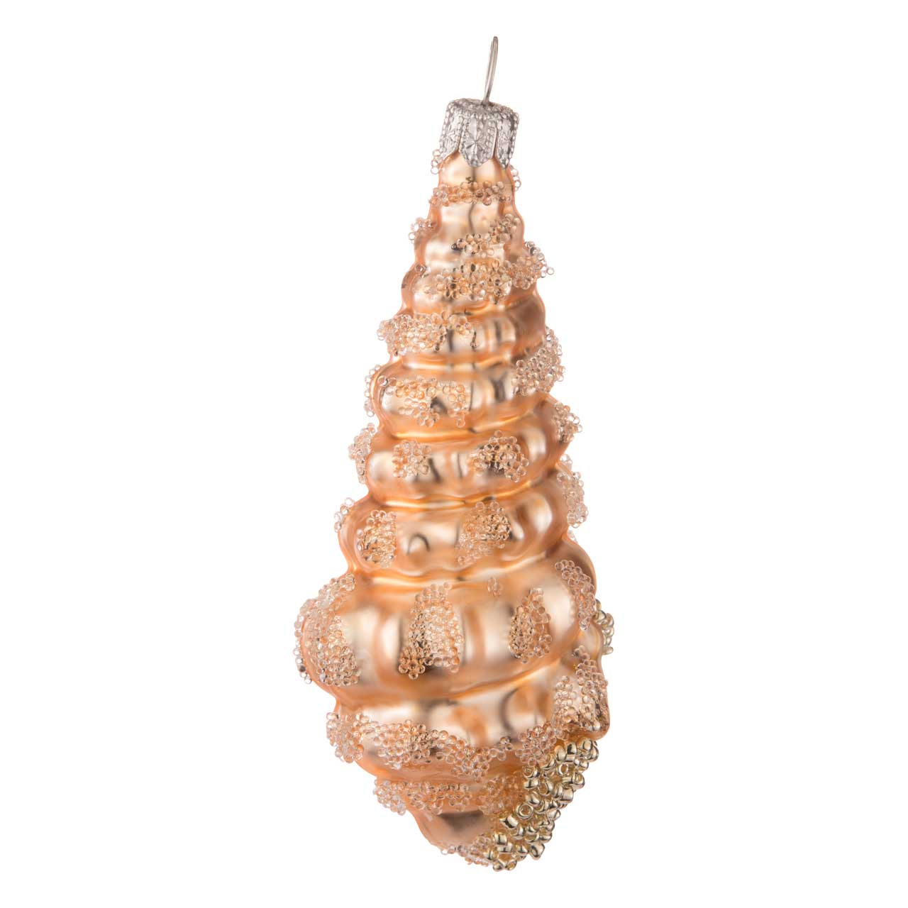 Ce spécimen possède une coquille mince et pointue avec une structure en spirale claire. Des paillettes transparentes animent la structure de surface du fuseau. L'embouchure est bordée de paillettes dorées comme du sable.