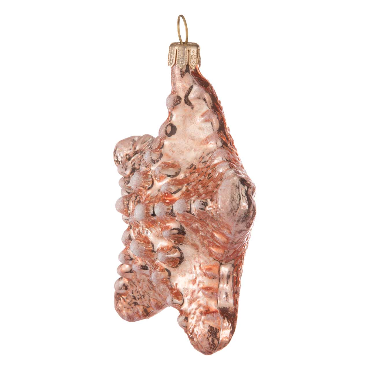Et ce spécimen en verre semble s'être paré de ses plus beaux atours pour l'occasion. Le corps caractéristique de l'animal, avec ses cinq dents, brille d'un rose élégant. Des points blancs scintillants de différentes tailles marquent les épines et le dos a également été tamponné avec un grand souci du détail