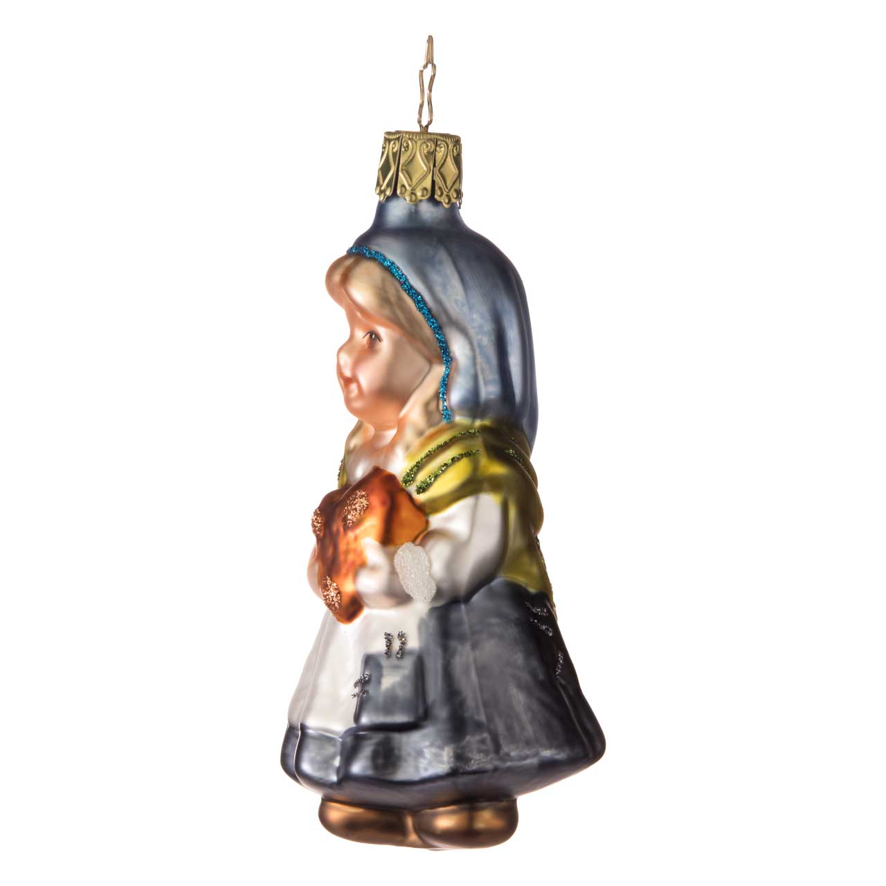 Cette figurine représente Gretel sous une forme classique et affectueuse, avec un panier dans les mains. Les couleurs combinent de douces nuances de gris et de bleu avec des accents dorés et chauds, tandis que de fins détails scintillants donnent un aspect vivant au motif. La forme droite et légèrement ventrue souligne le caractère féerique et fait de cette boule un charmant point de mire.