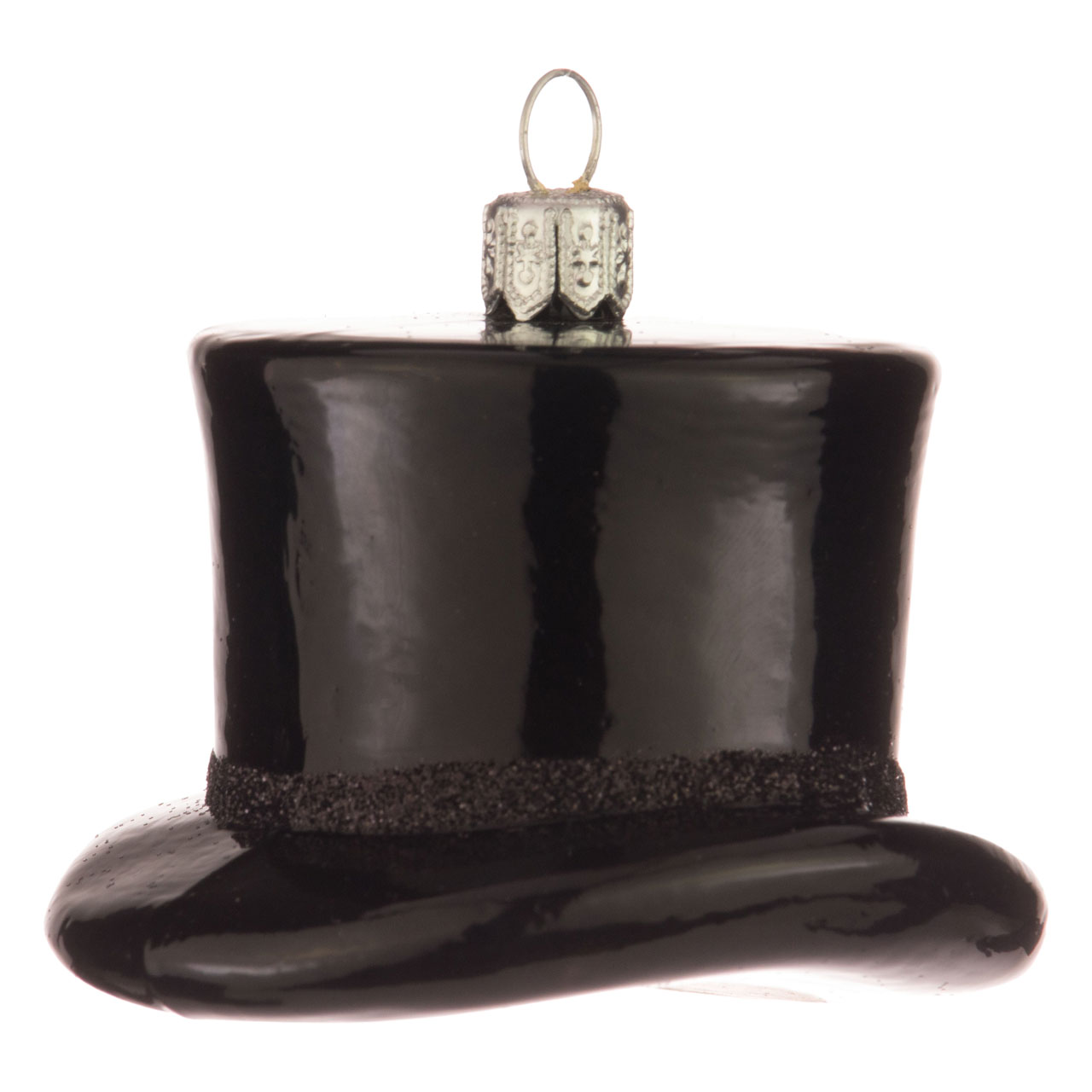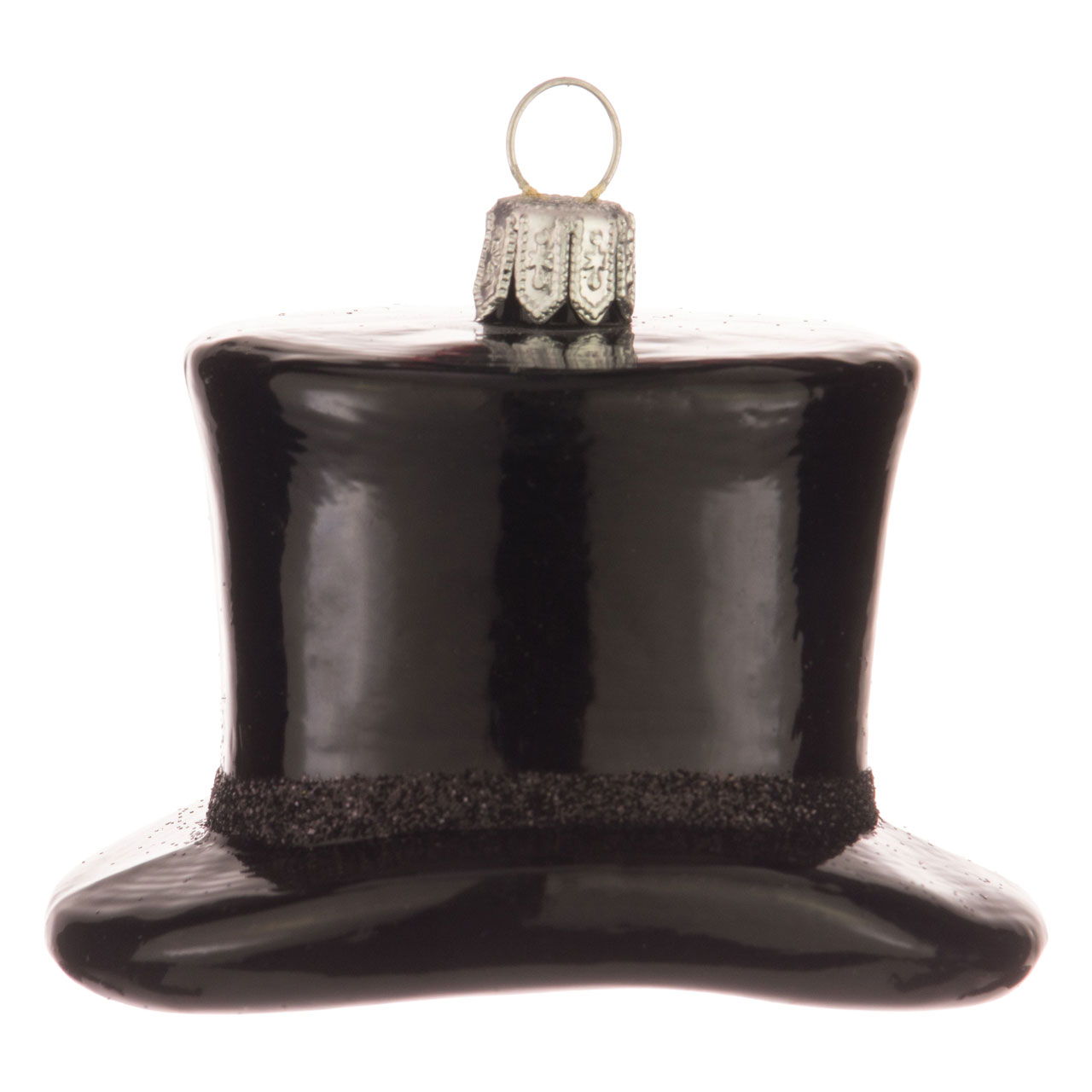 Ce chapeau caractéristique est trop emblématique avec sa couronne rigide qui s'élargit légèrement vers le haut, son toit lisse, son bord incurvé et son ruban étroit symbolisé par une bande noire scintillante. Bien entendu, le chapeau lui-même est également noir et merveilleusement brillant, et une petite couronne argentée a été ajoutée pour le suspendre. Petit détail raffiné : le dessous du chapeau haut de forme a été recouvert d'un vernis noir mat de forme ovale, ce qui suggère la doublure intérieure du chapeau de manière distinguée et réussie.