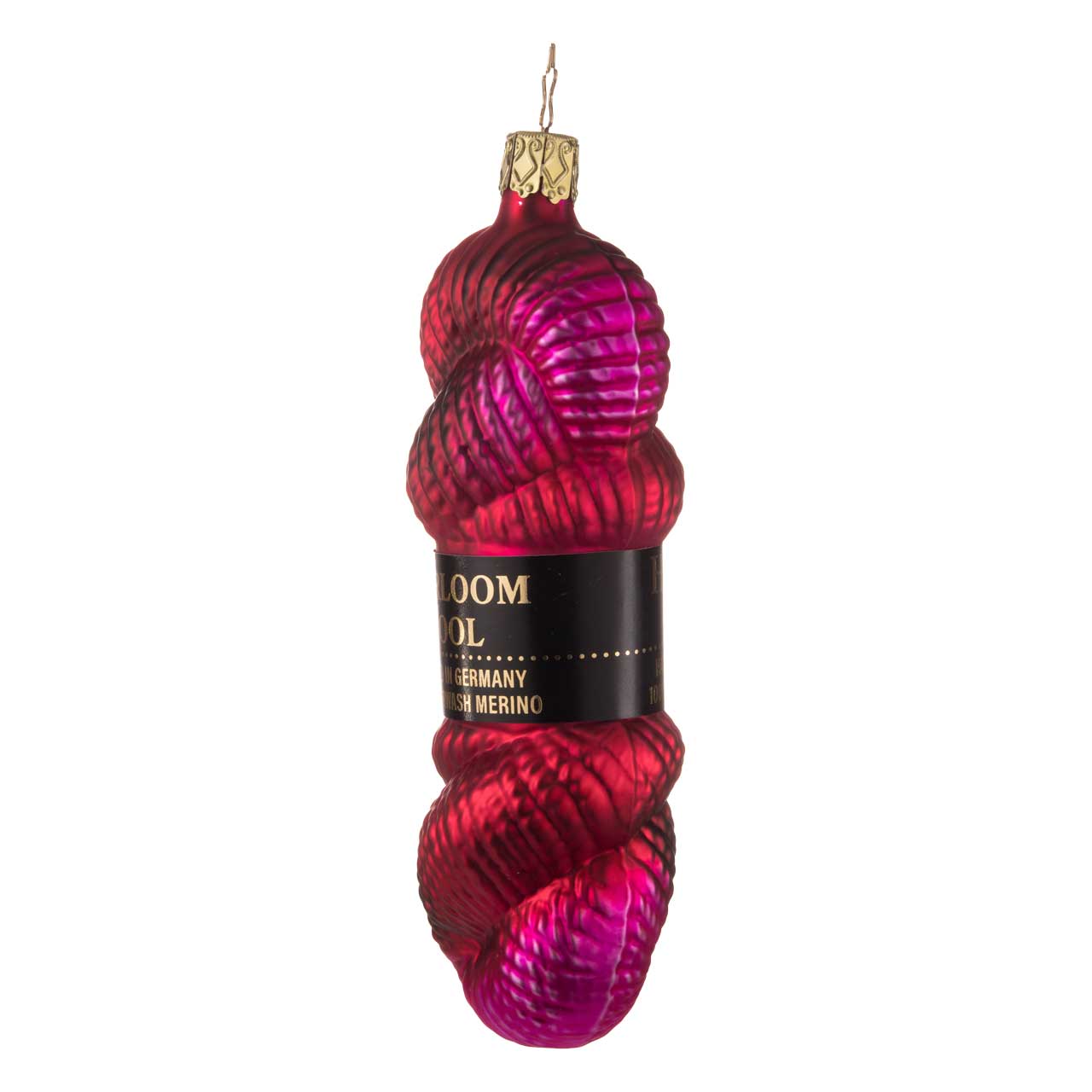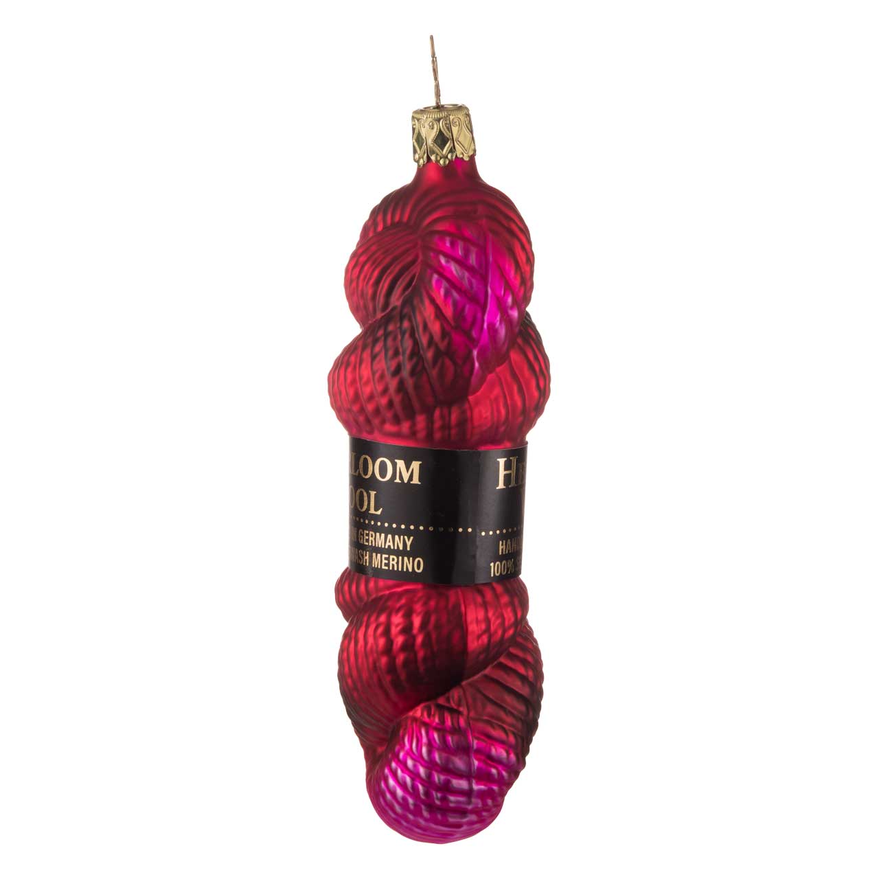 La figurine en verre a la forme d'un écheveau de laine soigneusement enroulé, pourvu d'une étiquette à banderole noire qui lui confère un aspect authentique. Différentes variantes de couleurs sont disponibles
