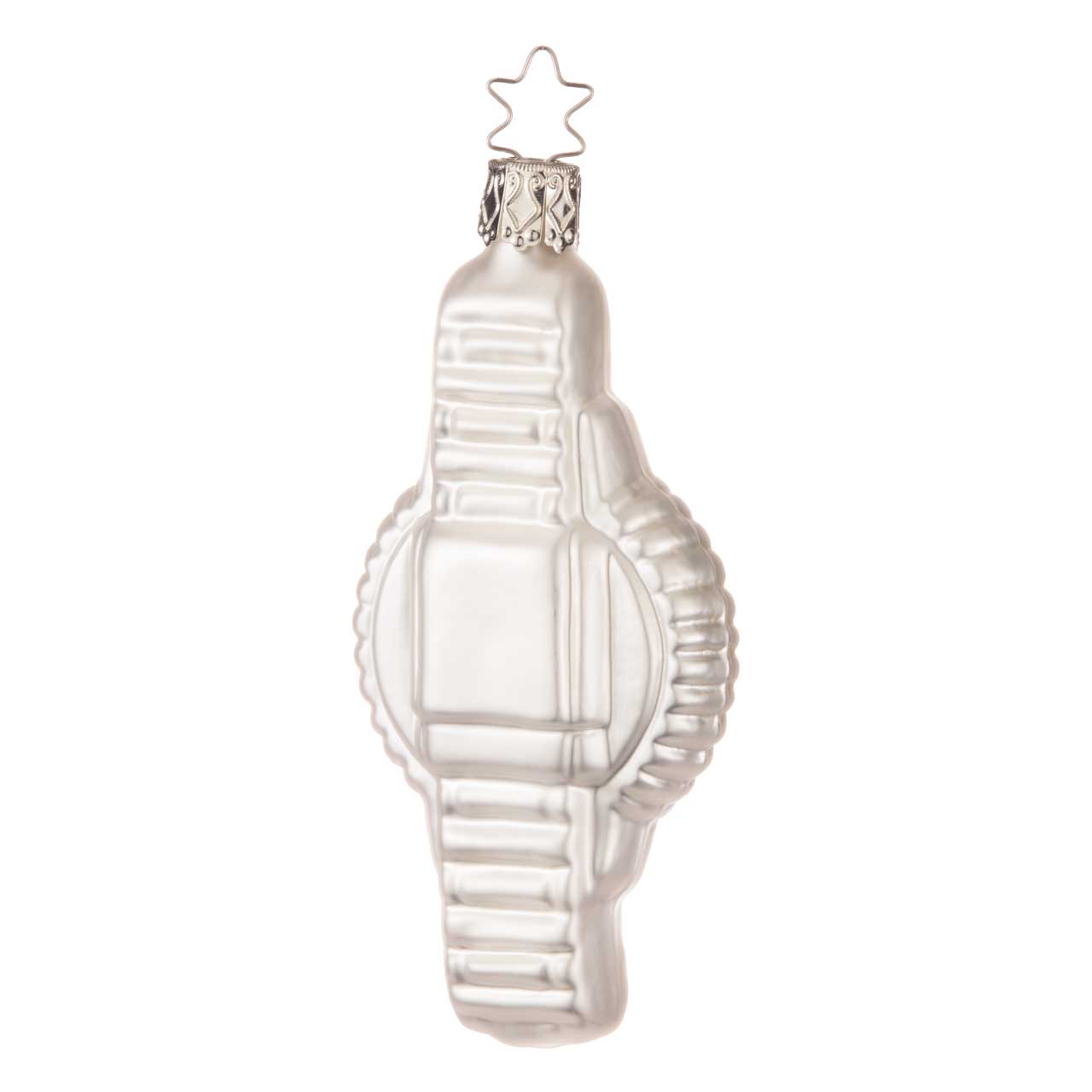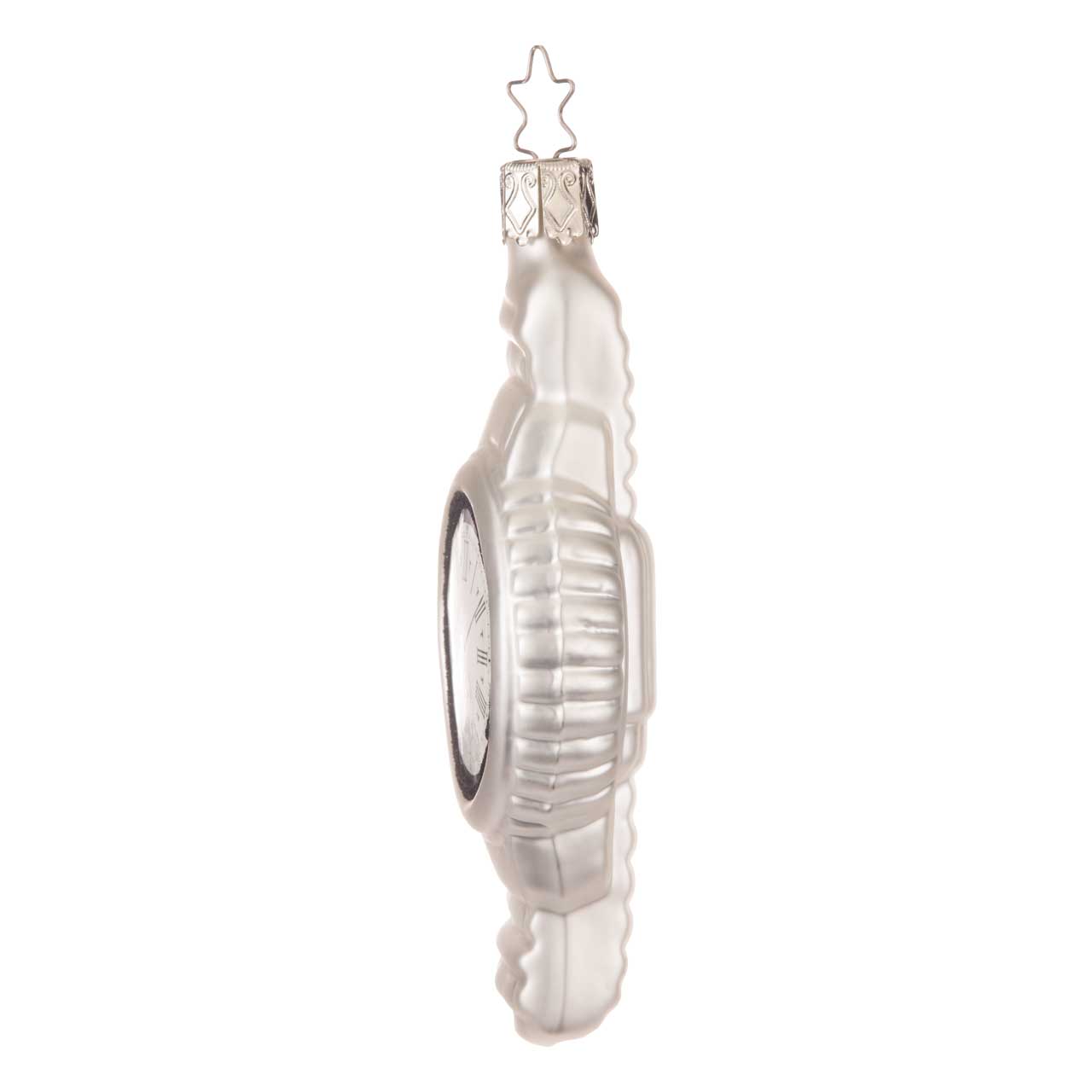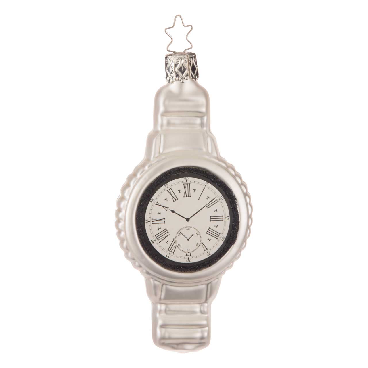 La montre possède un boîtier argenté et un bracelet métallique. Les heures sont indiquées en chiffres romains sur le cadran, sur lequel une petite aiguille des secondes fait des cercles dans la partie inférieure.
