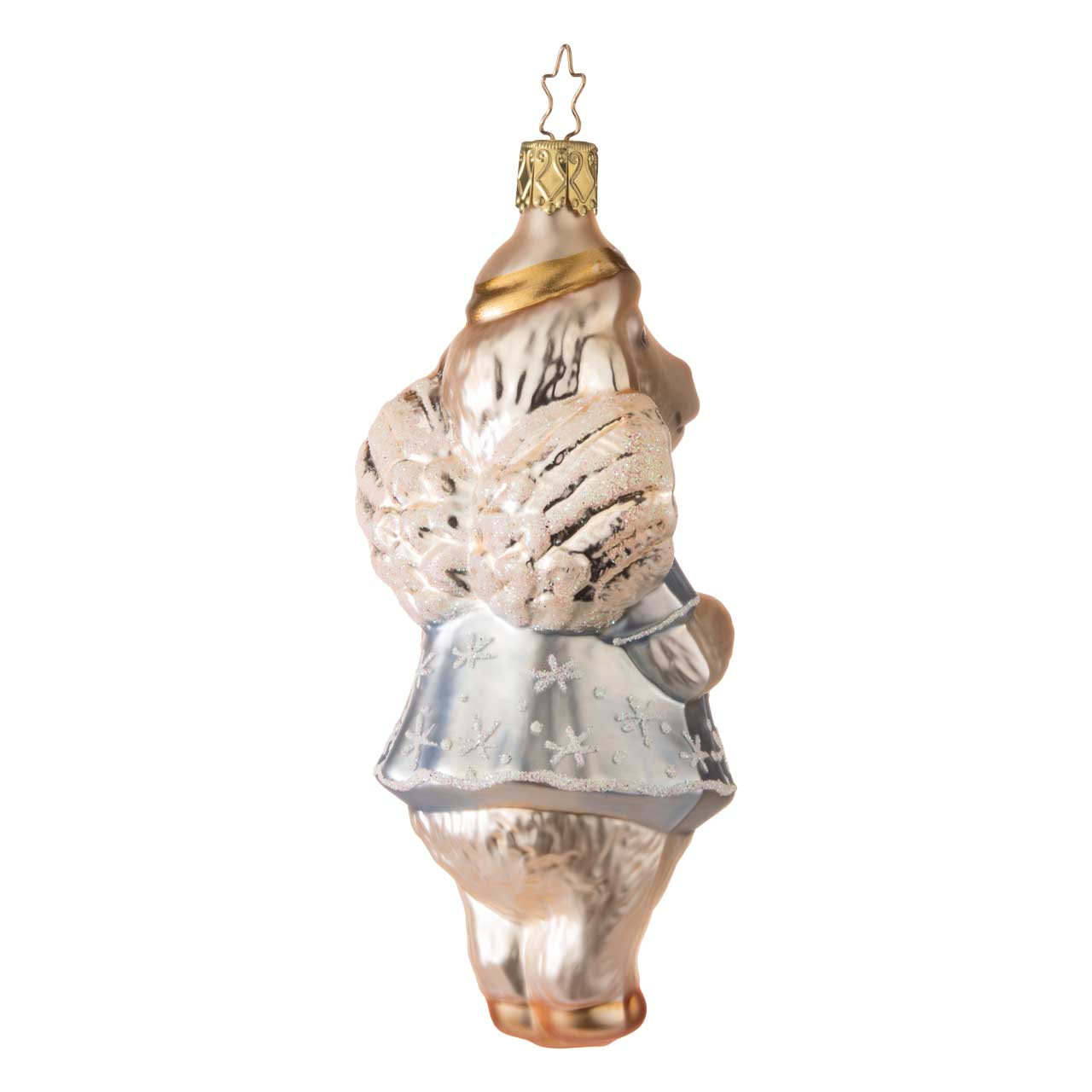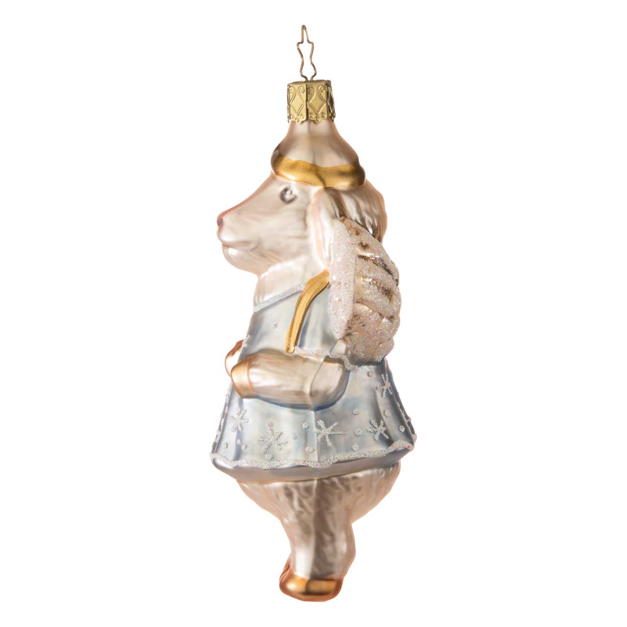 Le motif du mouton céleste se rattache à une longue tradition de symbolisme doux et paisible. Les moutons ont toujours été synonymes de calme, de sécurité et d'une certaine innocence - des qualités qui conviennent particulièrement bien à la période de recueillement. Dans de nombreuses histoires et représentations, ils accompagnent les scènes de fête en tant qu'observateurs silencieux ou incarnent l'harmonie et la protection. Ce mouton ressemble presque à un petit être céleste : avec des ailes délicates, une expression douce et une attitude qui respire la sérénité. Il rappelle un peu le compagnon silencieux d'un monde hivernal féerique, qui veille discrètement sur tout et répand une ambiance chaleureuse et apaisante