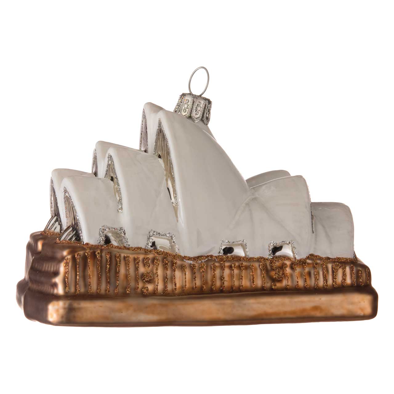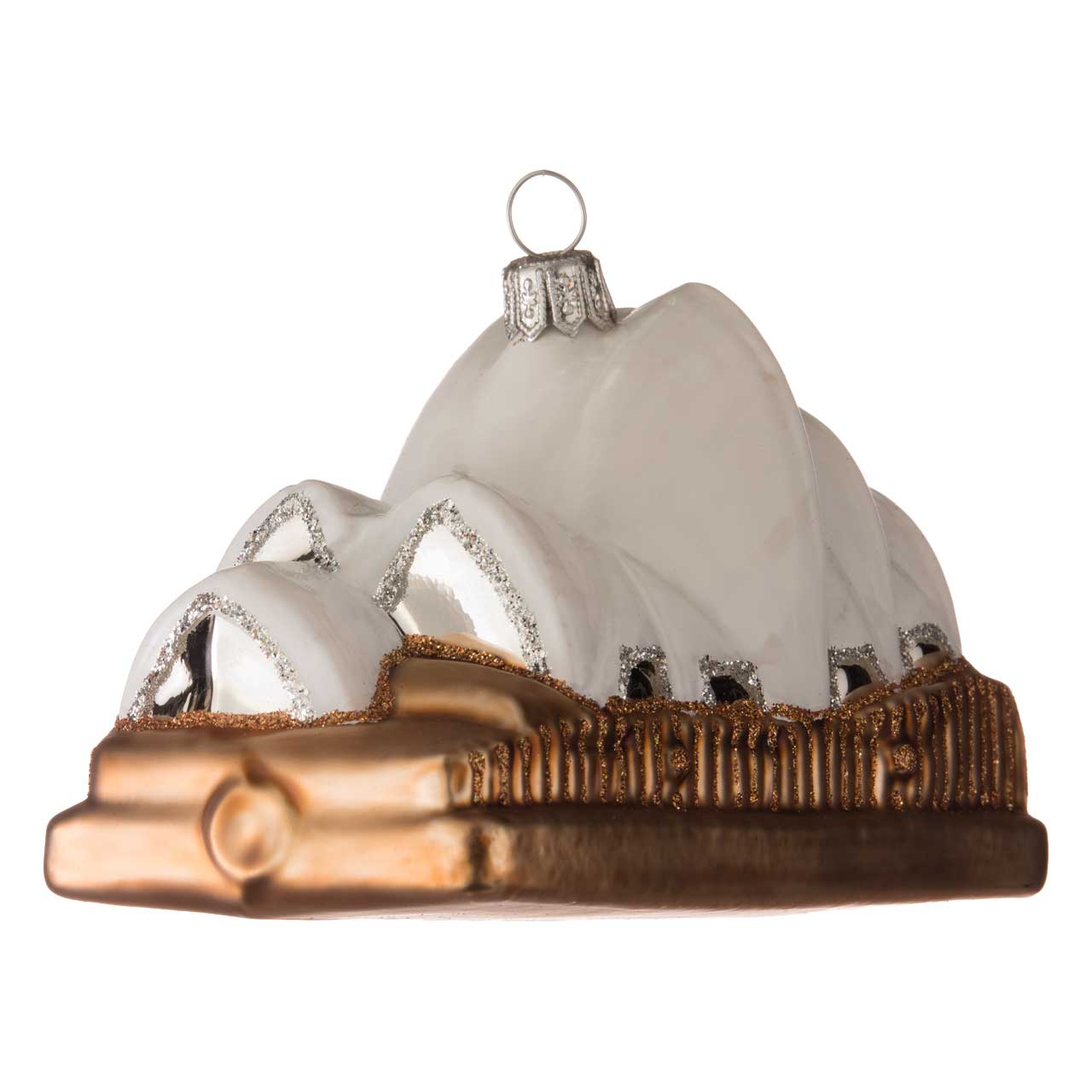 Cette reproduction riche en détails présente la forme caractéristique de l'Opéra avec ses toits courbes en blanc et argent, soulignés par de fines lignes scintillantes. Le socle brille d'un ton bronze chaud et forme un contraste élégant avec les surfaces claires. Une pièce artistiquement conçue qui allie beauté architecturale et élégance festive.
