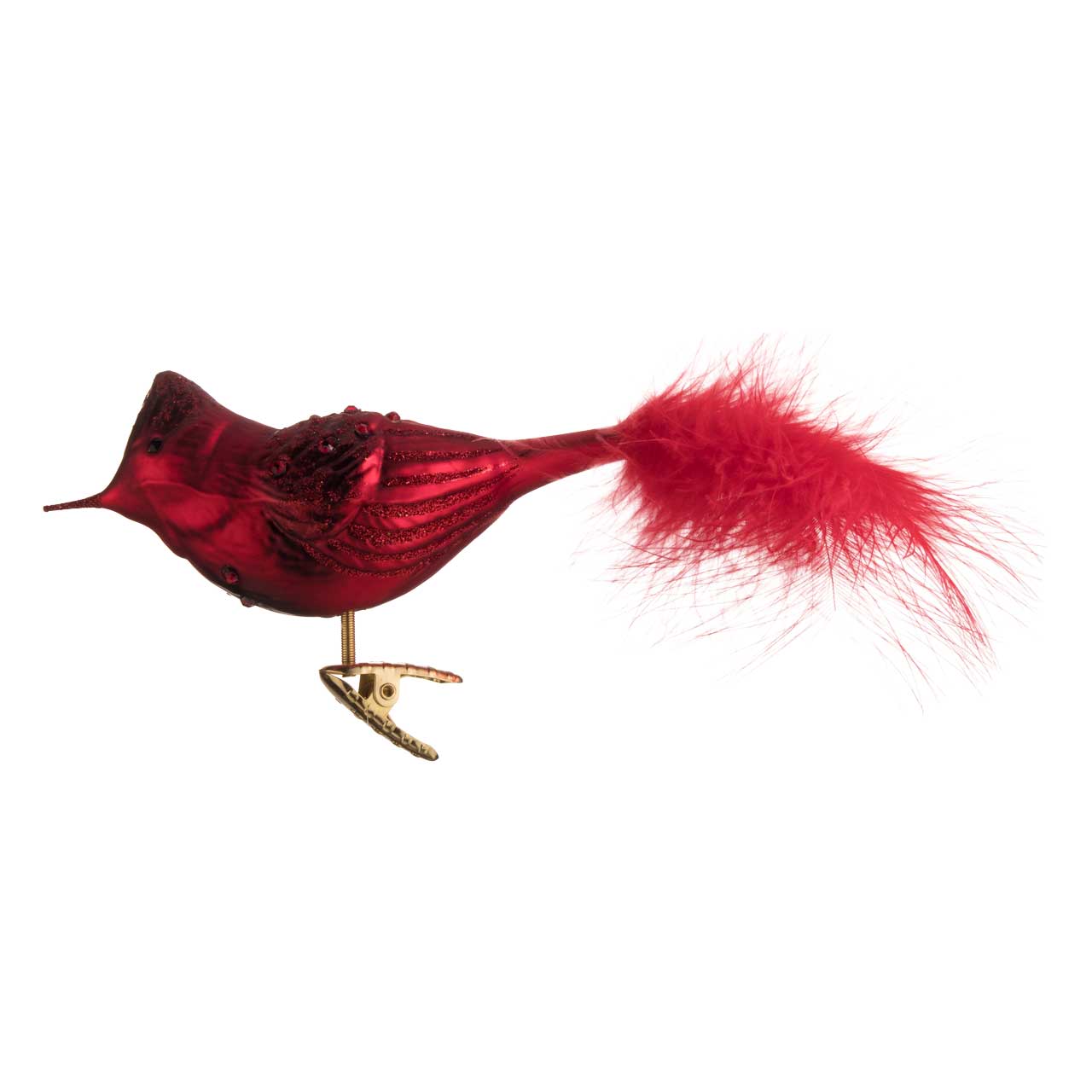 Cette figurine reprend exactement ce sentiment : un oiseau stylisé aux courbes douces et aux détails délicats, dont le rouge vif est encore souligné par des accents chatoyants et scintillants. La longue queue de plumes duveteuses lui confère une légèreté et un mouvement enjoués. Dans l'ensemble, la figurine semble élancée et allongée, avec un corps rouge brillant, des nuances sombres et des accents scintillants qui lui donnent une allure particulièrement noble et vivante.